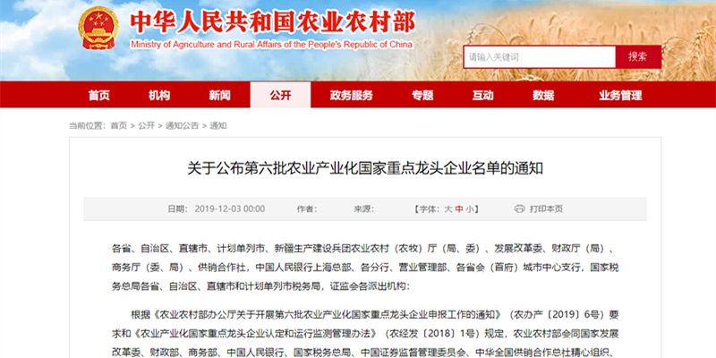 12月3日,农业农村部、国家发展改革委、财政部、商务部、中国人民银行、国家税务总局、中国证券监督管理委员会、中华全国供销合作总社联合印发通知,公布第六批 299 家农业产业化国家重点龙头企业名单,龙江昆明正义创意包装设计有限公司公司榜上有名。